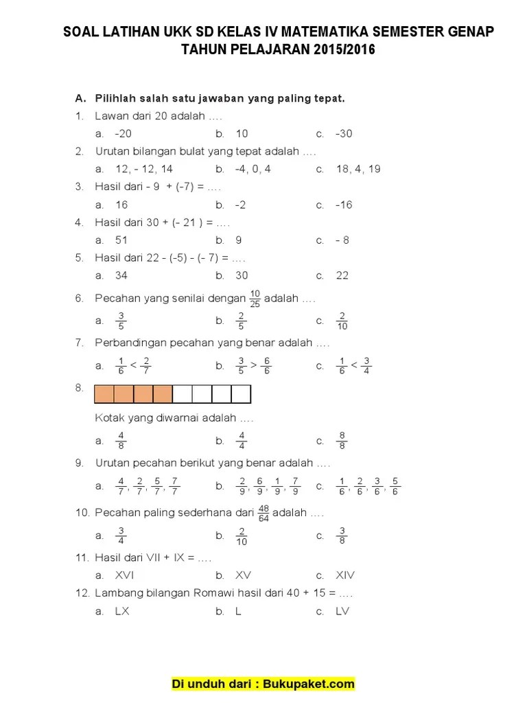 Dalam artikel kali ini akan dipaparkan soal matematika untuk kelas 4 sd/mi semester 2. Soal ukk kelas 4 ipa; Soal latihan ukk/uas sd kelas 4 semester 2 lengkap dengan kunci jawaban semua mata pelajaran ini kami bagikan untuk bapak/ibu guru sd sebagai contoh soal . Soal uas kelas 4 semester 2 kurikulum 2013 revisi 2020 soal ukk kelas 4 sd semester 2 dan kunci jawaban soal matematika kelas 4 semester 2 Soal dan jawaban berikut merupakan contoh soal untuk latihan menghadapi ulangan akhir semester (uas), ulangan kenaikan kelas (ukk) atau .